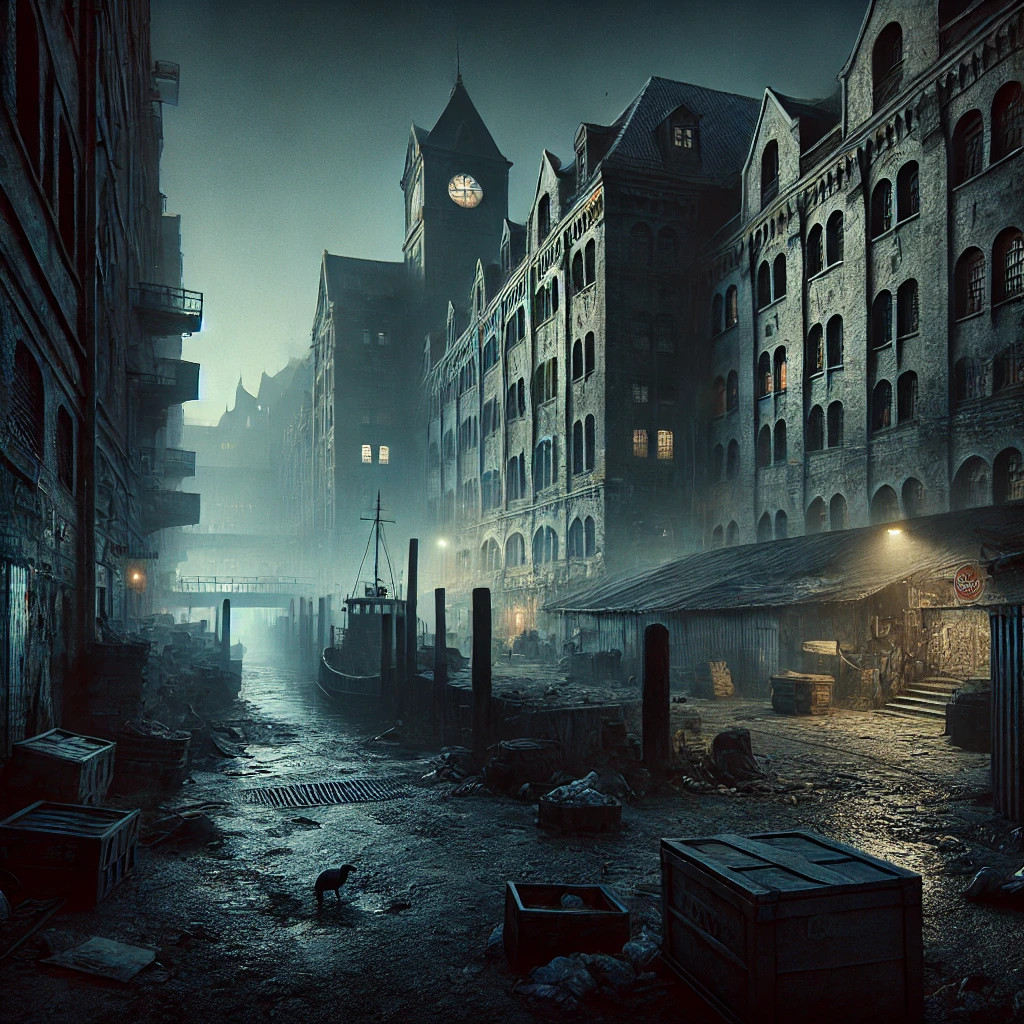 Willkommen am alten Fischmarkt, einem Ort, an dem der Verfall regiert und das Gesetz nur eine ferne Erinnerung ist. Einst das pulsierende Zentrum des Handels, haben jetzt Schmuggler, Verbrecher und zwielichtige Gestalten die Kontrolle übernommen. Zwischen den zerfallenen Lagerhallen und im Schatten der verlassenen Docks florieren illegale Märkte und geheime Treffen, wo jedes Geschäft tödlich enden kann. Ein falscher Schritt, und du verschwindest spurlos in den dunklen Gassen, die nur die Wenigsten wieder lebend verlassen. Traust du dich, das Herz der Hamburger Unterwelt zu betreten? Eine Stadt im Zwielicht. Ein Markt ohne Regeln. Ein Ort, der deine dunkelsten Geheimnisse kennt.
