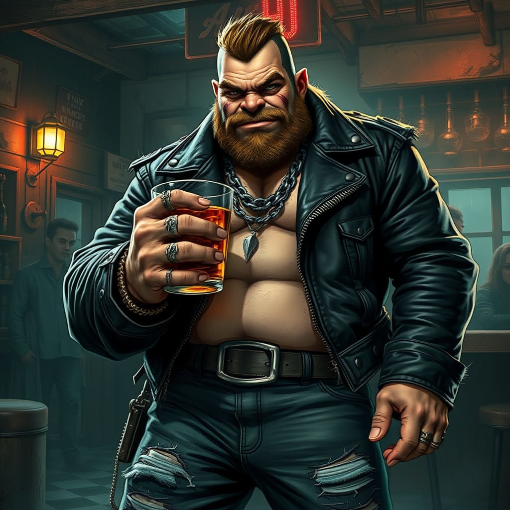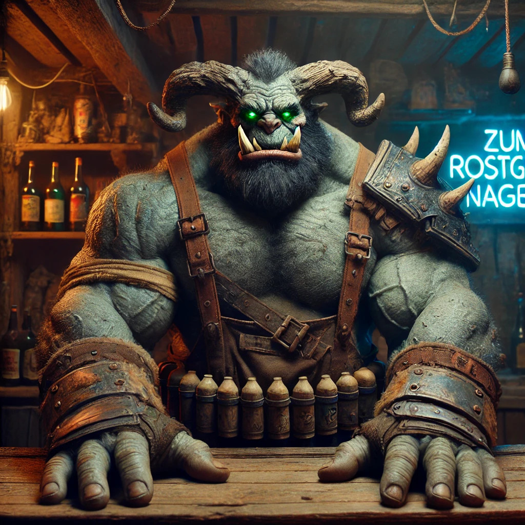 Big Mike - Der Koloss hinter der Bar Im Schatten der neonbeleuchteten Straßen und zwischen den schmierigen Tresen des "Rusty Nail" steht ein Mann - oder besser gesagt: ein Troll - der mehr Geschichten kennt, als er Drinks ausschenkt. **Big Mike** ist kein gewöhnlicher Barkeeper. Seine gewaltige Gestalt, die graue Haut von Narben durchzogen, und seine leuchtend grünen Augen ziehen jeden in seinen Bann, der den Mut hat, die Bar zu betreten. Einst war er ein gefürchteter Schläger in den Reihen einer berüchtigten Gang. Heute schüttelt er Drinks, brummt Warnungen und verkauft Informationen - für den richtigen Preis. Hinter dem Tresen mag er harmlos wirken, doch wehe dem, der seine Gastfreundschaft mit Ärger verwechselt. Denn wenn Big Mike zuschlägt, bleibt kein Stein auf dem anderen. Suchst du Verbündete, Informationen oder einfach nur einen sicheren Ort im Sturm der Schatten? Hier findest du vielleicht alles - oder nichts. Doch eins ist sicher: Big Mike sieht, hört und vergisst nichts. Ein Troll, ein Mythos, ein Barkeeper, der mehr Geheimnisse verbirgt, als die Schatten je preisgeben könnten. Komm rein, bestell einen Drink - und frag dich, ob du das, was du erfahren wirst, wirklich wissen willst.