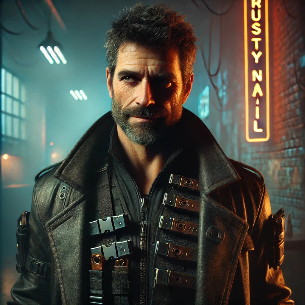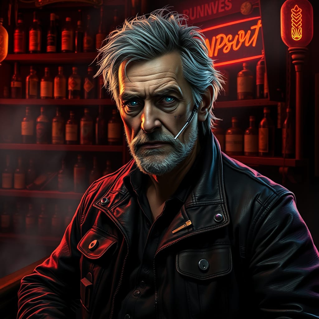 Stitch - Der Mann, der fast alles weiß, aber noch lange nicht alles kann Willkommen im Runnerspoint, wo Geschichten fließen wie das billige Bier! Hinter der Theke steht Stitch, ein ehemaliger Runner und jetziger Barkeeper, dessen Wissen über die Schatten fast so groß ist wie sein Hang zum Reden - aber eben nur fast. Stitch hat die Angewohnheit, immer dann die Klappe aufzureißen, wenn die Gefahr am größten scheint, und seine endlosen Anekdoten klingen oft zu schön, um wahr zu sein. Seine Narben und kybernetischen "Upgrades" mögen eindrucksvoll aussehen, doch die harten Zeiten sind vorbei - inzwischen ist er besser darin, leere Gläser zu füllen als Wunden zu versorgen. Und doch: Stitch genießt Respekt, nicht unbedingt wegen seiner (ehemaligen) Fähigkeiten, sondern wegen seiner Loyalität gegenüber seinen Gästen, die ihm oft mehr zu verdanken haben, als sie zugeben würden. Also komm vorbei, hör ihm zu und wer weiß - vielleicht nimmst du eine nützliche Information mit… wenn du es schaffst, die halben Märchen herauszufiltern!
