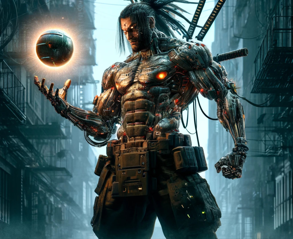 Katsching - Der Sturm des Klingen-Clans Der Schrecken der Schatten! Wenn das Geräusch von kreischendem Metall die Luft zerschneidet und metallische Kugeln wie tanzende Sterne durch die Nacht schweben, wissen Eingeweihte: Katsuchin ist in der Nähe. Sein Name bedeutet "der beruhigende Wind der Klinge", doch nichts an ihm verheißt Ruhe. Ehemals ein Schüler des legendären Kaze-no-Ha-Clans, einem geheimnisvollen Ninja-Orden, der die Kunst des lautlosen Krieges perfektionierte, wurde Katsuchin wegen seiner Besessenheit von Technologie verstoßen. Heute ist er ein Wanderer, ein Mann aus Stahl und Fleisch, dessen Cybergliedmaßen wie ein Arsenal an Waffen wirken. Seine Reflexe sind schneller als das Auge, und seine magnetische Kontrolle metallischer Objekte lässt selbst die kühnsten Gegner erzittern. Doch es ist seine kreative Zerstörungswut, die ihn wirklich unberechenbar macht. Gerüchte erzählen, dass Katsuchin einst eine ganze Festung mit nichts als einer Kettensäge und seinem magnetischen Manipulationssystem zu Fall brachte. Jetzt verfolgt er seine eigenen Ziele - ein einsamer Krieger auf der Suche nach seiner verlorenen Ehre. Doch Vorsicht: Für ihn zählt nur die Klinge und die Freiheit, die sie ihm bringt. Katsuchin - der letzte Schatten, den du jemals sehen wirst.