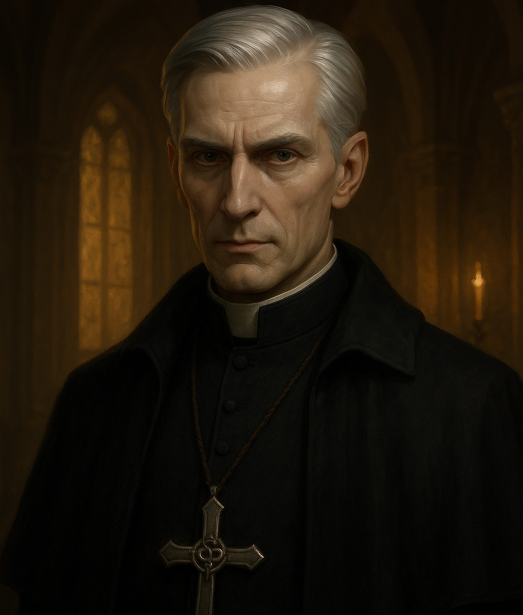 Ordenspriester Raphael - Die Stimme des göttlichen Feuers Ein hochrangiger Ordensmagier der Katholischen Kirche, berüchtigt für seine unerschütterliche Überzeugung und seinen fanatischen Glauben an göttliche Reinheit. Raphael gilt als Exorzist, Richter und Lehrer - ein Mann, dessen Worte ebenso heilen wie verurteilen können. In kirchlichen Kreisen ist er ein Symbol der Disziplin, in den Schatten Hamburgs jedoch ein gefürchtetes Omen.